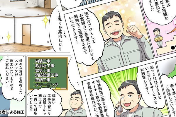 内装工事やハウスクリーニング、電気工事・給排水工事・消防設備工事・空調工事まで